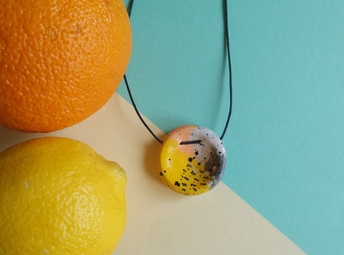 Hello you beautiful people my name is Eva. I am a graphic designer from Ljubljana, Slovenia. The love of making things was always strong and I finally turned in to a business. My latest obsession is ceramic looking necklaces made out of clay, painted with acrylic paint and epoxy resin. These color combinations are in my modest opinion – amazing!