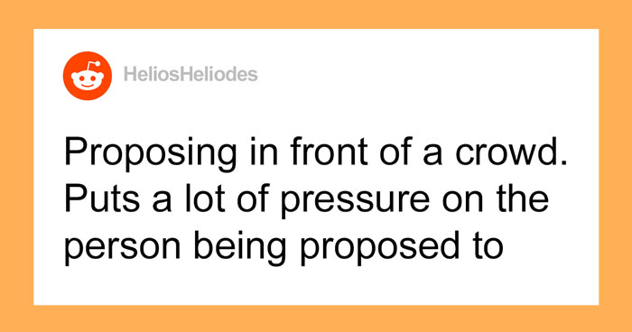 Proposing in front of a crowd. Puts a lot of pressure on the person being proposed to.