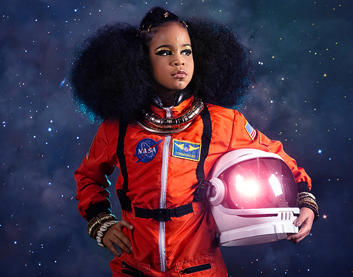 The two artists obsessed with unique and visual storytelling have been in the industry for over 10 years. Recently, they started the AfroArt series to recognize and celebrate the versatile beauty of the African diaspora. Kahran and Regis’ main focus is regular everyday kids and their representation. “The purpose of this series is to illustrate the story of our royal past, celebrate the glory of the here and now, and even dare to forecast the future. With this series, we aim to empower children of color to embrace their natural curls and the skin that they’re in.”