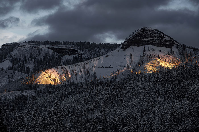 I have been a lifelong Nikon photographer and have found the weather-sealing on their gear to hold up to even the most ridiculous snow events. I have dropped my cameras into feet of powder, have had a whole ponderosa’s-worth of snow fall on my equipment, and it’s held up wonderfully. When conditions get very extreme, I utilize a heavy tripod that gives me stability in winds that can reach 100 miles per hour. One last item I have found to be helpful for extending my camera batteries (they drain within minutes if it’s cold enough!) is a product called The Cold Case by Cold Case Gear. It’s a little pouch that insulates batteries and charging bricks- I usually can double the length of shooting time by using that!