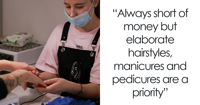 Always short of money but elaborate hairstyles, manicures and pedicures are a priority.