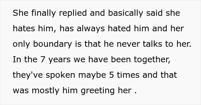 In any case, it’s possible to achieve the point where both parties are polite and respectful with each other. Accomplishing this comes down to the level of dislike the partner and family mutually feel.