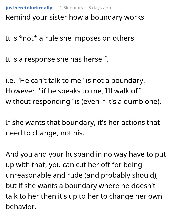 This woman also wondered what might have happened with her husband and sister, as the sibling, out of the blue, demanded to draw a boundary between them and never speak to him again. She tried to understand her sister’s sudden hatred for her spouse, but she refused to talk about it and asked to respect her decision.