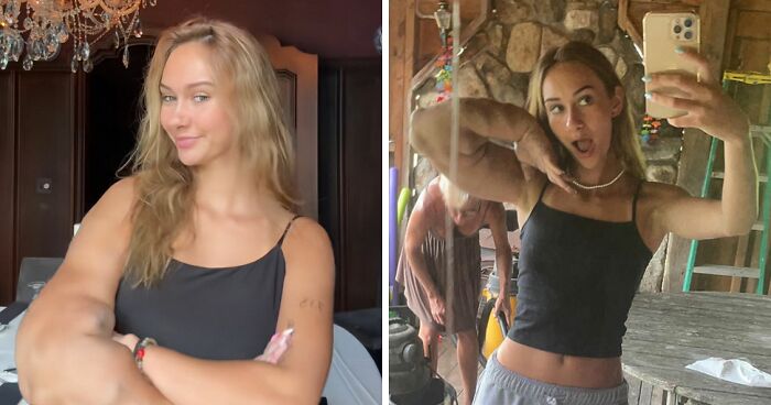 In a recent video, she attempted to do a pushup but laughed and dropped to the ground when she couldn’t.