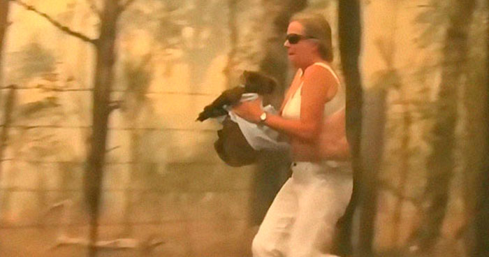 But one recent act of bravery has given the country hope in fighting the blaze. After spotting a koala crossing a road amongst the flames in New South Wales, a local woman named Toni rushed to the animal’s aid, wrapping it in her shirt and pouring water over it.