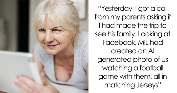 Unfortunately, the older woman took her Facebook posting game to a whole new level when she decided to create and share an AI-generated picture of her son and daughter-in-law. She made it seem like they were happily watching the football game at her house and wearing matching jerseys.