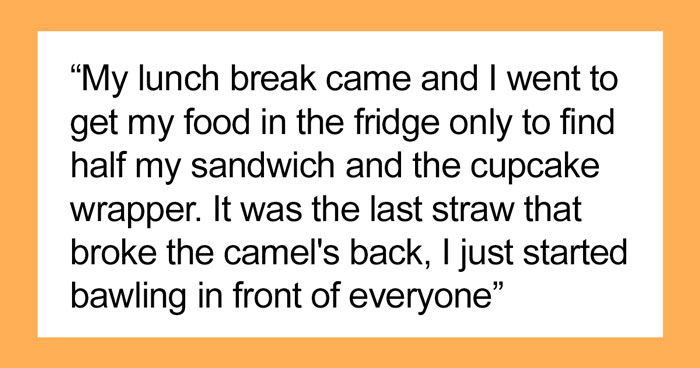 A few days ago, one Reddit user shared their incident at work to one of its communities, stating that they have never been so embarrassed in their life. They explain that one day, they found that someone ate half of their lunch, which made them bawl. The post received a lot of attention and in just 5 days collected almost 7K upvotes and more than 2.6K comments.