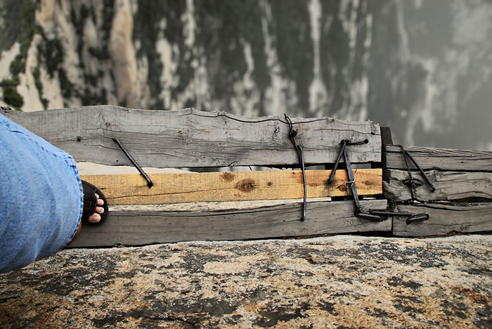 As wonderful as Chinese tea is, it is definitely not something you’d closely associate with exhilaration, adrenaline and the fear of death. Mt. Huashan in China, however, manages to bring all of these things together by featuring a death-defying cliff-side mountain hiking trails that brings daring visitors to a tea house 2,160 m (7,087 ft) up on the mountain’s southern peak.