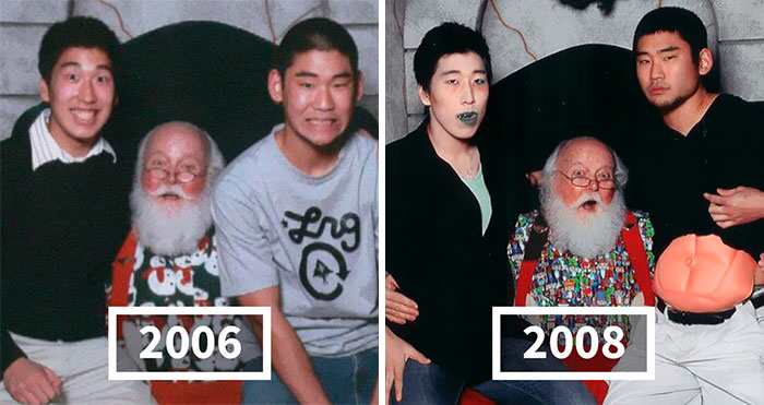 Two Guys Take Pics With The Same Santa For 12 Years And People Notice They’re Not Aging Properly