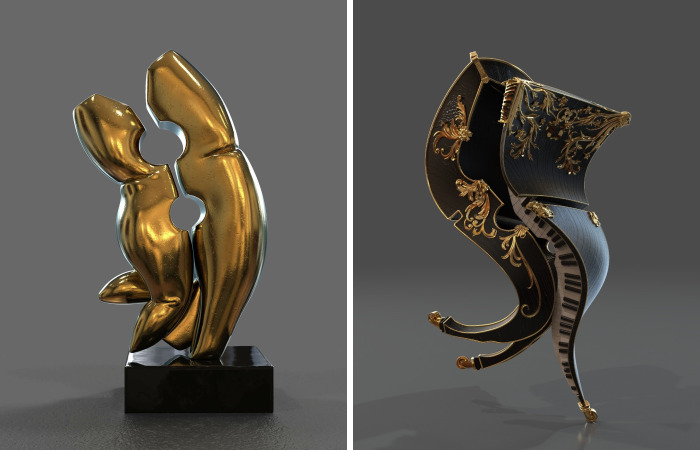 Zygo uses techniques of abstraction and defamiliarization in order to imbue a dynamic contortion into this sturdy structure, by bending half over the other, while raising one leg of the other, as an expression of happiness, similar to the iconic pose in Alfred Eisenstaedt’s famous photography.